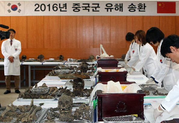 2014年3月28日,中国空军首次派出两架国产新型战机,对接迎437具在韩志愿军烈士遗骸的民航客机进行护航。2015年3月20日,空军首次派出伊尔-76飞机将68具在韩志愿军烈士遗骸接迎回国。