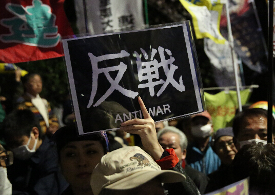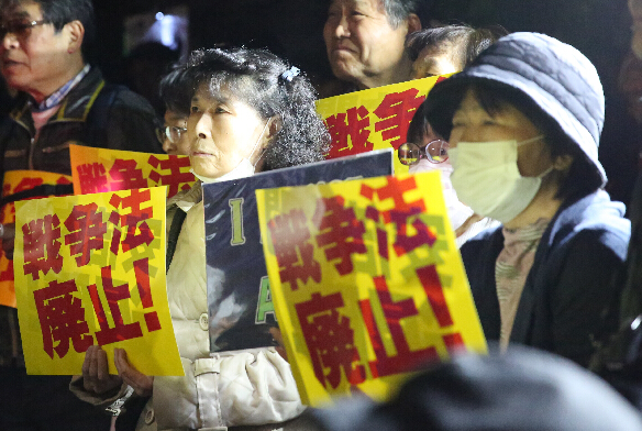 当日,安倍政权强推的新安保法正式实施,标志着日本战后长期坚持的“专守防卫”政策被扫入历史故纸堆,日本一贯标榜的“和平国家”招牌也被摘除。当晚,约3.7万名日本民众在国会前集会,强烈抗议安保法实施并要求立即废除该法。