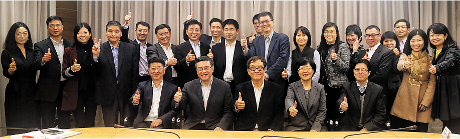 港媒高层赴台参访团成员与联合报系高层合影。