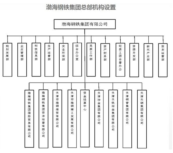 渤鋼集團直屬天津市國資委,為國有獨資企業,注冊資本170億元,是集燒結、煉鐵、煉鋼、連鑄、軋鋼、金屬制品生產為一體的綜合性特大型企業集團。2010年7月,由天津市委、市政府批準,天津鋼管集團(下稱“天津鋼管”)、天津鋼鐵集團(下稱“天津鋼鐵”)、天津天鐵冶金集團(下稱“天津天鐵”)和天津冶金集團(下稱“天津冶金”)4家國有鋼鐵企業聯合組建,成立渤鋼集團。組建后的渤鋼集團系統龐雜,據渤鋼集團及四家子公司的官網顯示,渤鋼集團旗下各類公司及工廠總數達66家。2014年、2015年,渤鋼集團連續入圍“世界500強”。