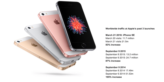 蘋果公司在2016年3月21日發布了iPhone SE,當時全球整體流量平均增長83%,但來自印度的流量則增長160%,來自中國的流量也增長150%。CNBC則在本周早些時候報道稱,蘋果公司已在中國收到了340萬份以上的預購訂單。