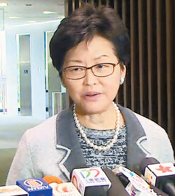 林鄭說,香港從來都是中國不可分離的一部分,「一國兩制」亦是一個憲制的要求,所以任何提出這些「港獨」的言論,都是一件錯事;希望所有社會人士都能看清楚事件本質違反了「一國兩制」、違反了《基本法》,亦完全是罔顧香港700萬人的福祉,所以需要受到譴責。