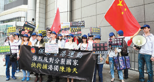 另外,民間團體「保衛香港運動」昨日也舉行請願,反對「港獨」。該會一行約20人,從灣仔港鐵站外出發,游行至警察總部。發起人傅振中指出,身為「香港民族黨」召集人的陳浩天,煽動群眾擾亂社會秩序,該組織更表明要香港獨立,鼓吹「港獨」,質疑有關人士違反《刑事罪行條例》第9條及第10條,故要求警方徹查及拘捕有關人士;他們向警方遞請願信,促請警方跟進。