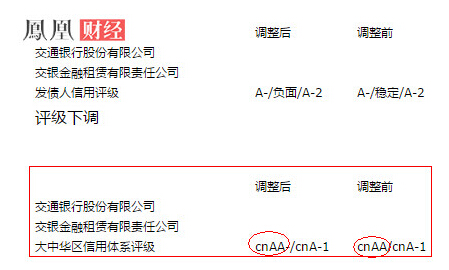 交通銀行是標普此次唯一下調評級的金融機構