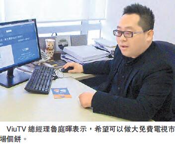【香港商報網訊】記者周偉立報道:亞洲電視日前「熄機」后,新一個免費ViuTV今日傍晚正式開臺。ViuTV總經理魯庭暉指出,該臺目標并非要改變慣性收視,而是要做大免費電視市場的餅,并培訓新人。他早前坦言,ViuTV的名難記,吁大家記住「99臺」就OK。有學者相信,免費電視市場的餅會做大,市場可容納2至3個電視臺。