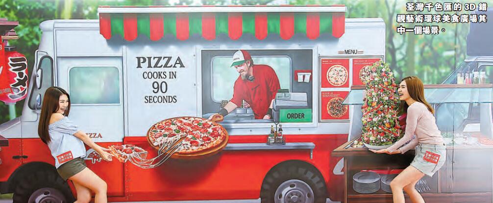 【香港商報網訊】記者奧加報道:荃灣及元朗千色匯邀得本地著名3D Trick Art藝術家Fei Wong設計錯視藝術的場景,將多國經典美食一一活靈活現呈現於眼前,帶你跳進奇妙的美食旅程。由即日起至4月9日於荃灣千色匯及元朗千色匯商場內,共設有6款不同的3D錯視藝術美食裝飾場景,等你前來發掘,攝出鬼馬新角度。