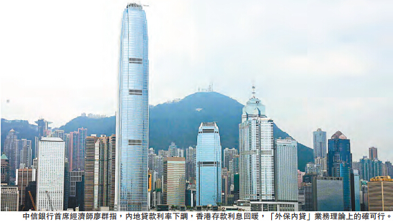 那麼「外保內貸」是否能夠大行其勢?中信銀行首席經濟師廖群指,內地貸款利率下調,香港存款利息回暖,「外保內貸」業務理論上的確可行,且有套利空間,但考慮到內地公司在香港設立的多為窗口公司,不是所有的窗口公司皆有足夠的資金量做境外抵押。