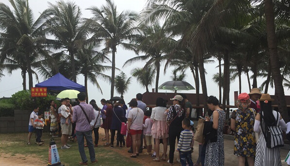 稻草人嘉年華活動現場,市民排隊領票。南海網記者王旭攝