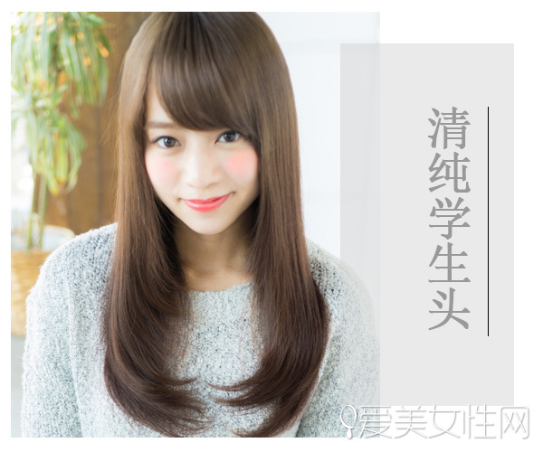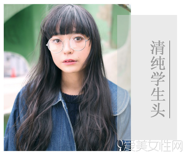 简单的长发配齐刘海,不染发不烫发,清纯自然不做作,是校园里颇受欢迎的一款学生头,再戴上圆框眼镜,乖萌可爱。