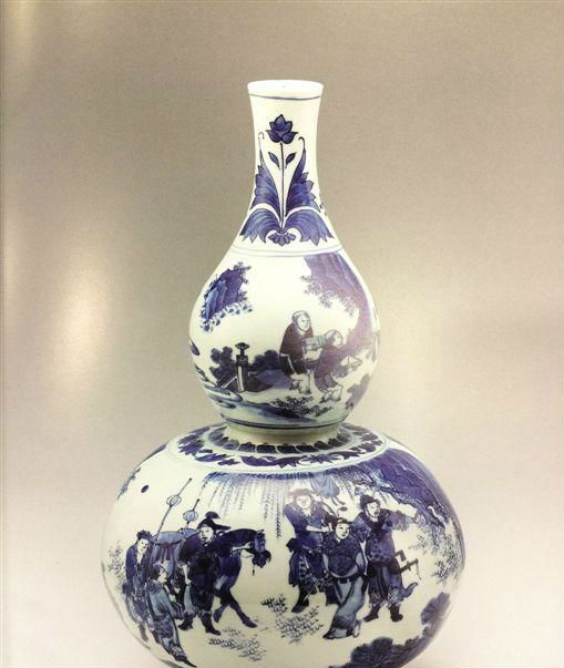 景德镇窑青花人物故事图葫芦瓶