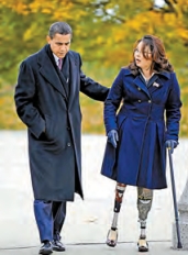 達克沃斯今年48歲,母親是泰國華裔,她在夏威夷長大,2004年在伊拉克作戰期間被火箭彈擊中并失去雙腿,2009年被奧巴馬任命為退伍軍人事務部助理部長,2012年當選伊州國會眾議員,是該州首位亞裔國會眾議員。
