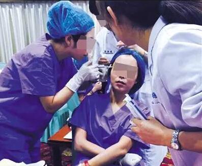 广州的XX女士在一家美容院注射玻尿酸丰太阳穴,不想竟造成术后感染、险遭毁容。