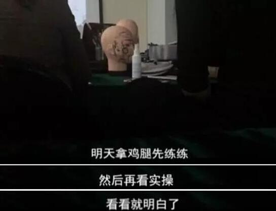 深入培训班,第一天讲的重点是要会忽悠,第二天就可以实操,什么?你说找人体模型?nonono,人家用鸡腿就可以咯!千叮咛万嘱咐的内容是:如果真的帮人家打出事情了,那就去医院看,好好上来个,操作不要让他们拍视频,亲眼看到亲眼抓住才算是非法行医。