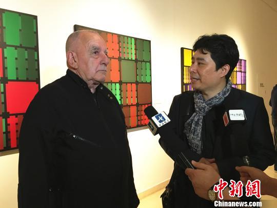 德国构成主义大师莱勒?卡尔哈尔德在展览现场向人们介绍他的创作。 高红超 摄