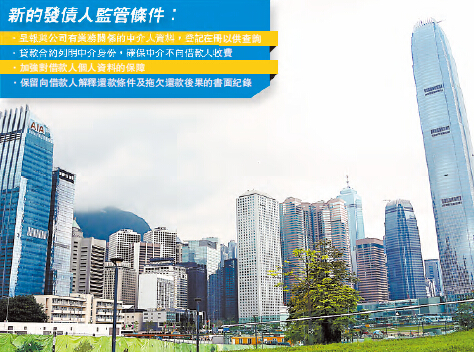 為此,財經事務及庫務局計劃實施更嚴格的發債人牌照條件,包括若貸款涉及中介公司,放債人須向當局呈報中介公司資料,並登記在冊以供公眾查詢;在貸款合約列明財務中介身份,向借款人提供中介協議副本,確保中介不向借款人收費;以及向借款人解釋還款條件及拖欠還款後果,並保留書面紀錄等。