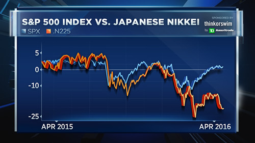 2016年標普500指數小幅走高,而日經指數跌幅已高達逾17%。Worth預計跌勢還將持續下去。“假設是,我們正搖搖欲墜接近常見水平的低位,且我們將打破這些低點,”他表示,“你可以稱之為頭肩模式,但無論如何這一走勢不妙,往往導致市場走低而不是升高。”