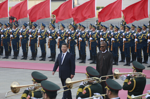 央視網消息,國家主席習近平12日下午在人民大會堂東門外廣場舉行儀式,歡迎尼日利亞聯邦共和國總統穆罕馬杜·布哈里對中國進行國事訪問。