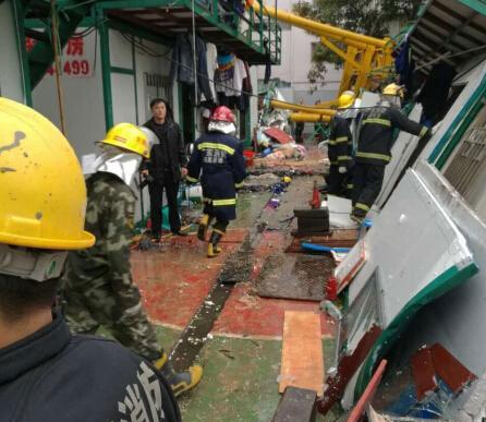 东莞市政府通报称,由於突发雷电大风强降雨,该工地一龙门架被大风吹倒,导致附近约200平方米的工棚坍塌。目前有14名被救人员在医院接受治疗。