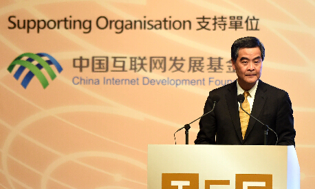 梁振英表示,香港互联网经济拥有着「一国两制」的独特双重优势。他又指,内地在「十三五」规划提倡「大众创业、万众创新」,香港应抓紧此机遇,进一步发展互联网经济,成为内地与国际的桥梁。他提到,於今年的施政报告中,已推出多项措施及资助鼓励创业,推动香港发展成为智慧城市。