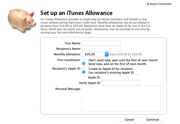 蘋果2003年推出iTunes店時,就已經存在iTunes補貼服務,但到底有多少人在使用它還不清楚。近年來,蘋果已經引入其他方法用於管理家庭開支,最值得注意的就是家庭共享(Family Sharing)選項。家庭成員可以互相查看購買情況,也有家長通知選項,用以批准孩子購買iTunes內容。