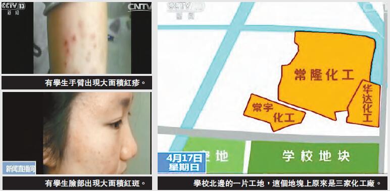 【香港商报网讯】央视新闻昨日报道称,江苏省常州外国语学校去年9月搬迁至新校址后,已有493名学生验出皮炎、血液指标异常,个别学生更患上淋巴癌、白血病等。经检测,该校区地下水、空气均检出污染物。学校附近正开挖的地块上曾是3家化工厂,专家称校区受到的污染与化工厂地块上污染物吻合。