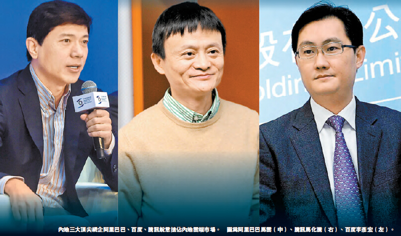 【香港商報網訊】近年網上企業愈來愈發達,許多網站內容龐大兼功能強勁,以頭幾位購物網站為例,其商品種類動輒過百萬,一年處理數以億計的交易,由於網企數量不斷增長,所需要的雲端電腦伺服器數量供不應求。中國近年網購尤其發達,直接刺激內地雲端服務的龐大需求,內地三大頂尖網企,即行內稱之為BAT(百度Baidu 、阿里巴巴Alibaba、騰訊Tecent)銳意搶占內地雲端市場,可以說內地雲端市場已進入三國時代。香港商報記者韓濠昕