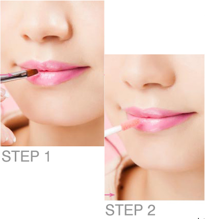 Step 1 用唇刷沾取淡彩唇膏,均匀涂抹在双唇上。