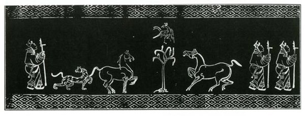 然而,大多数画像砖上的画像,彼此之间是没有关系的,如另一块画像砖,砖上有5种画像8个个体,即执戟武士、骏马、豹子、树和凤鸟,它们之间就没有什么关系。