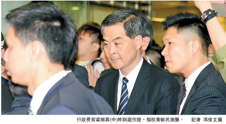 【香港商报网讯】激进派立法会议员黄毓民(人称「癫狗」)前年在行政长官答问大会上,涉向特首梁振英(CY)投掷玻璃杯,被控普通袭击罪。案件昨日正式开审,控方第一证人行政长官梁振英出庭作证,成为特首上庭作证第一例;辩方证人运输及房屋局局长张炳良亦曾到庭。无律师代表的黄毓民亲自盘问梁振英时,质疑其口供是由警方准备,他并无仔细阅读後便签署。CY不断强调,自己的口供是「真实无误」,但为自己没有留意错字而感抱歉。