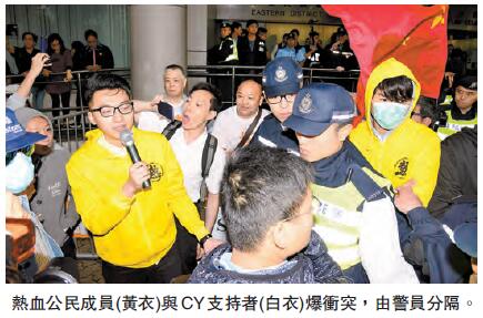 开庭之前,法庭内座无虚席,热血公民成员「四眼哥哥」郑锦满因没有座位站在庭内,多名穿「撑CY」T恤人士鼓噪,质疑他「有特权」,要求他离开,与十多名热血公民成员互相指骂,双方推撞要警员分隔,一轮扰攘後,郑锦满最终离开法庭。聆讯期间,秩序大致良好,但裁判官仍需不时提醒旁听人士不准骚扰聆讯。