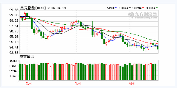 周二(4月19日)美元指數大幅走低,現交投于94.10關口。英鎊自本月以來首次升穿1.44美元,因兩項關于6月份公投的的民調顯示,英國留在歐盟的支持率遙遙領先,令英國可能脫歐的緊張情緒有所緩解。