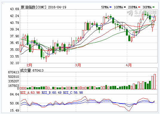 美國WTI原油5月期貨收漲1.30美元,或3.27%,報41.08美元/桶。布倫特原油6月期貨收漲1.12美元,或2.61%,報44.03美元/桶。