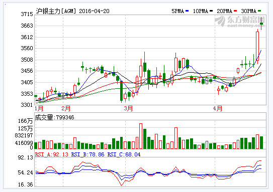當日市場方面,上海黃金交易所的期銀合約漲了4.3%,至3595元/公斤。夜盤盤中上期所主力合約延續盤初走勢,金、銀一度漲停。A股尾盤黃金股放量拉升,赤峰黃金、園城黃金、湖南黃金大漲。歐洲時段,國際金價、銀價雙雙飆升。