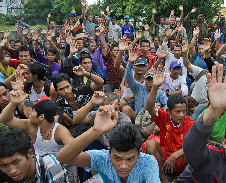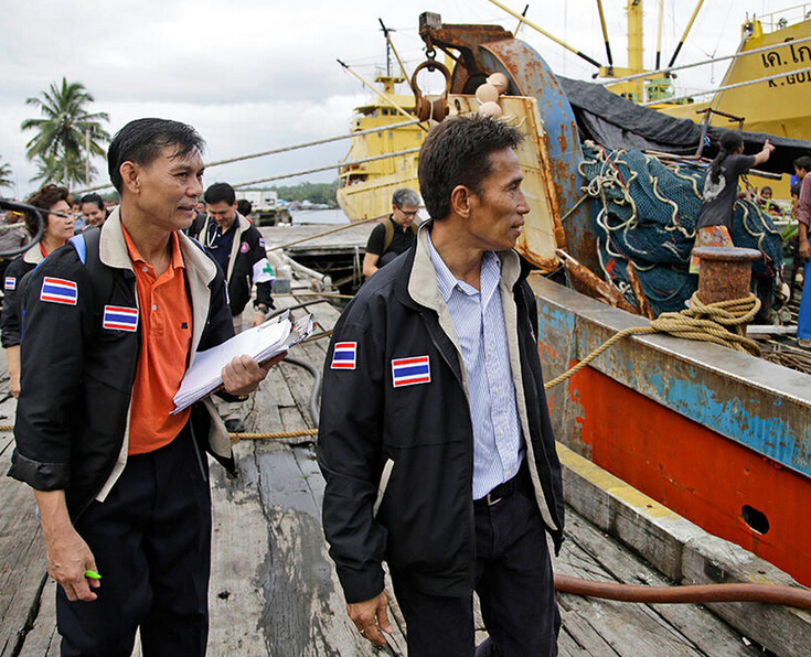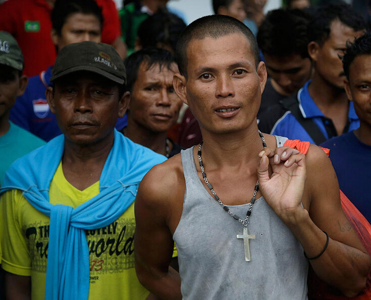 2015年4月4日,一名被解救的柬埔寨勞工抵達印尼Tual,他們向自由、向家鄉又邁進了一部。印尼警方稱在這次調查行動中逮捕了涉嫌販賣、奴役人口的2名印尼人和5名泰國人,這是美聯社報道該事件以來,第一批逮捕的嫌疑人。