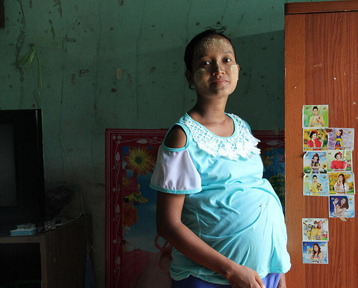 25歲的Win Win Than,即使在懷孕期間仍然被迫勞動,以償還她欠下的2萬泰銖(約3700人民幣)的債務。她曾嘗試逃跑,但被抓住,拽著頭發被拉上了車,之后被拷上手銬關在工廠一間小屋里。AP Photo/Esther Htusan