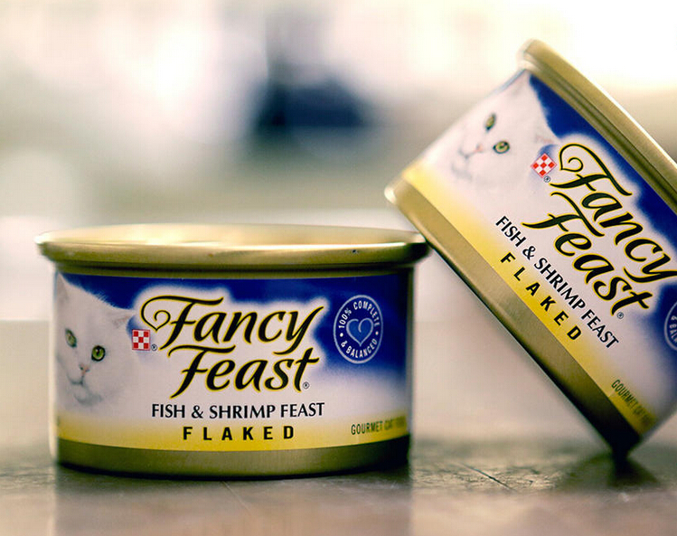 圖為2015年11月16日,美國佛羅里達州奧蘭多市一家超市售賣的泰國產魚蝦口味貓糧。
