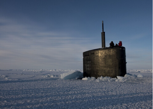 73月15日,美國海軍USS Hampton號洛杉磯級核潛艇在北極圈參加代號“ICEX 2016”的軍事演習,該艘潛艇從水下破冰而出,并展示了美國國旗。