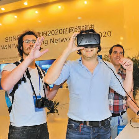 虚拟现实是目前非常火热的话题,市场上不少产品出售。售价不等。在华为展厅,基於4.5G网络的虚拟运动产品,吸引了外媒朋友排队体验。