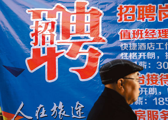 1月13日,山東省濱州市,距離春節已不到一個月,年底招工這場沒有硝煙的“大戰”早已悄悄打響,很多商家提前下手“招兵買馬”,在門口張貼了招聘廣告,并以提高待遇、增加福利等方式,吸引求職人員來應聘。視覺中國供圖