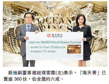 新鴻基地產(016)旗下將軍澳「海天晉」昨日公布新銷售安排,將於周日(24日)開賣45伙,包括1房至4房特色戶。新地副董事總經理雷霆表示,「海天晉」不足一個月賣逾360伙,占全盤約六成,套現30億元,又謂每一輪銷售每類戶型均近沽清。