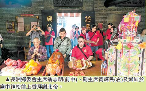 香港開埠前漁農人家多依水而生,息水患、保舟楫每年皆會拜南海洪聖(赤帝),再拜北方玄天上帝(北帝),而北帝乃長洲島民神靈之一。丙申猴年農曆三月初三(4月9日)乃北帝正誕,由本月6日至10日一連五天,長洲鄉事委員會聯同地方團體在共賀北帝寶誕之時傳承粵劇文化,該會重金(撥善款61萬元)禮聘新群英劇團。正誕當日,香港粵劇紅伶龍貫天(文武生)、尹飛燕(花旦)同臺獻藝。該會主席翁志明表示,連同戲棚、雜項費用共計逾100萬元,雖與去年費用相若,但物價升漲,惟於雜項中「開源節流」。有舖主反映,與去年比較人流量未減,但香油有所減少,相信與本港經濟放緩有關。香港商報記者 周駿