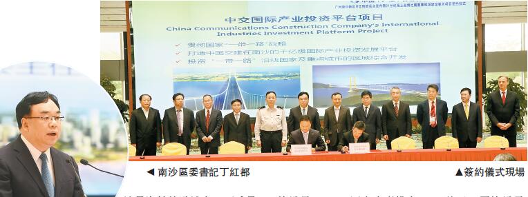 中國中鐵華南指揮部指揮長唐志成告訴記者,簽約內容是在南沙建設包括區域總部基地、國際結算中心、高端制造業基地和專業服務基地等項目在內的綜合平臺,將南沙列為公司打造中國高鐵「走出去」的重要基地。一旦建成,年產值會有700億左右。
