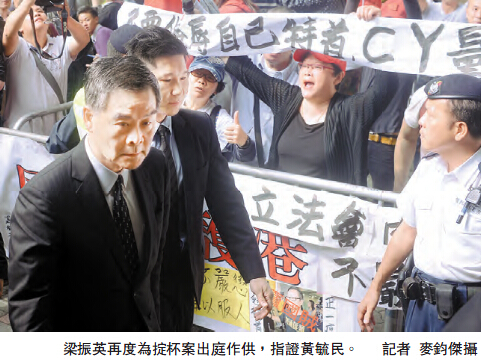 【香港商報網訊】前年7月立法會進行「行政長官答問大會」時,議員黃毓民涉向特首梁振英(CY)擲玻璃杯,被控一項「普通襲擊」罪,案件昨續審。梁振英昨再度出庭作供,在繼續接受黃毓民盤問時,疑因不滿黃重複問題,他多次表示拒絕回答;梁更表示,自己只關心施襲者應被繩之於法。梁振英昨日到庭及離庭時,均有支持及反對人士在旁示威。案件今日續審,梁振英將繼續作供。