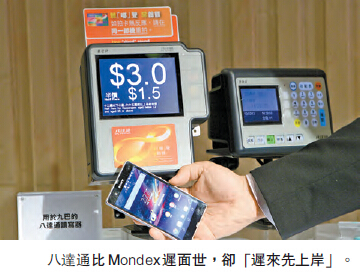 在 1997 年香港回歸前後,曾有部分專線小巴及屋巴士路線,使用 Mondex 以供乘客支付車資,但最終卻被八達通全面取代。而八達通則於上世紀九十年代尾,成為香港最普及的支付工具。雖然 Mondex比八達通更早面世,但卻又為何「遲來先上岸」?