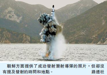 據朝鮮中央通訊社昨日消息,朝鮮最高領導人金正恩日前指導潛射導彈發射試驗,朝鮮再次成功發射潛射導彈。但報道未提及發射時間和地點。而韓國軍方則指出,朝方當天發射的所謂潛射導彈只飛行了數分鐘,大約只有30公里遠,原則上是發射失敗。