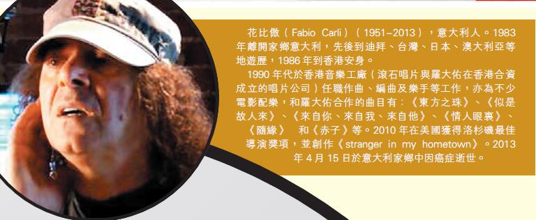 從《皇后大道東》到《似是故人來》,從《東方之珠》到《來自你、來自我、來自他》,原來那麼多你我熟悉的旋律,都來自意大利人花比傲。今年4月15日是花比傲離世三周年紀念日,旅意學者張長曉先生與意大利杏仁學社聯合策劃了一期「紀念花比傲逝世三周年特別專題」,一周之內陸續發表了關於花比傲及其在華的一些往事,與大家一起緬懷這位意大利制造、為華語樂壇做出不少貢獻的「香港音樂人」。在得知花比傲去世時,羅大佑曾用心為花比傲挑選出了12首他在香港時創作的作品,并在文章中提到兩人初見就產生了共鳴,稱花比傲為「我人世音樂的兄弟」,「輪回」再見。香港商報記者若笑