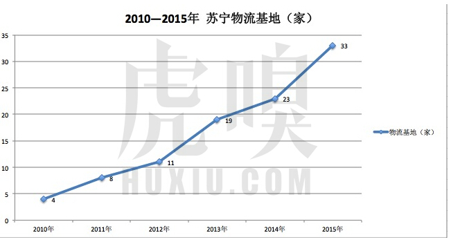 蘇寧曾在2010年提出,力爭在 2015 年前完成 60 個物流基地的建設,實際只做到了33個物流基地[京東200個物流中心],遠未達到原定目標。事實上,五年前的蘇寧無論在體量、品牌知名度,還是資金優勢 上,都比京東強,與政府的關系背景,可以其有更低的成本拿地建倉,可惜最初決心還不夠, 錯失一個時機。