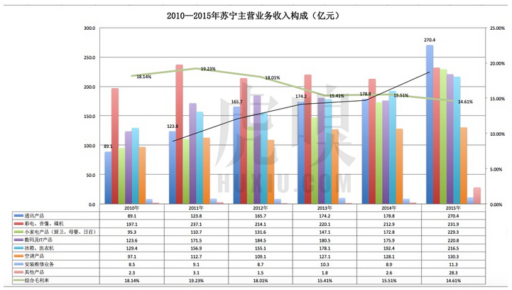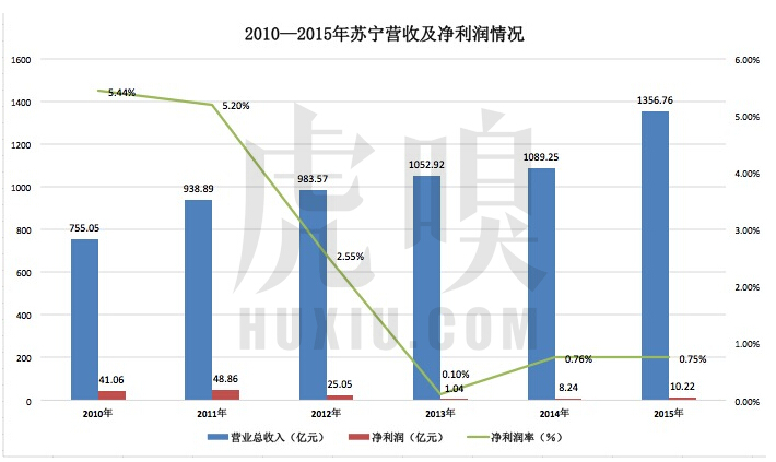 回顧蘇寧近六年的創收及盈利能力,如圖: