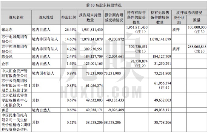 從蘇寧2015年年度報告中的“前10名股東持股情況”中,還未出現“阿里“的身影。因為蘇寧發2015年年報時,其定增計劃還未獲得中國證監會的批準。