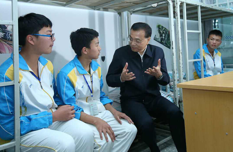 坐在一学生宿舍内的架子床上,李克强与该校几位初三年级的男生进行了一番关於学业规划的交流。